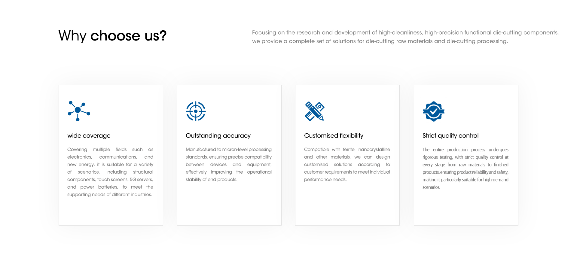 Providing a complete solution for die-cutting raw materials and die-cutting processing.
